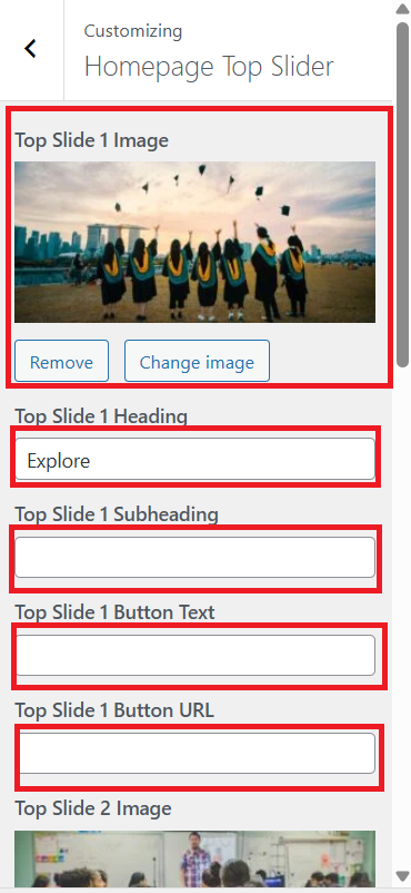 HomePage Top Slider: Add slider in top and also add some heading, subheading and buttton also set our button URL . Add multiple slides…